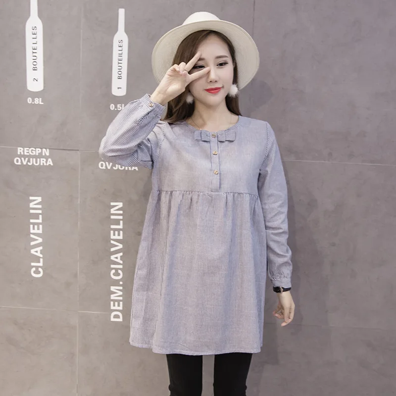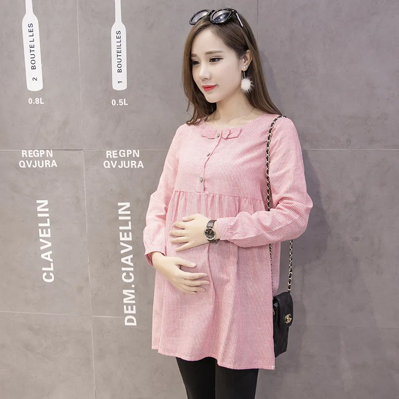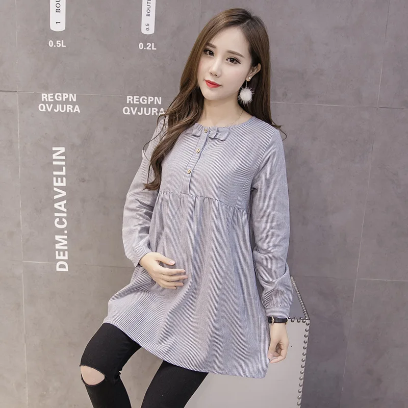 Spring and Autumn New Maternity Fashion Striped Bow Maternity Dress Base Skirt